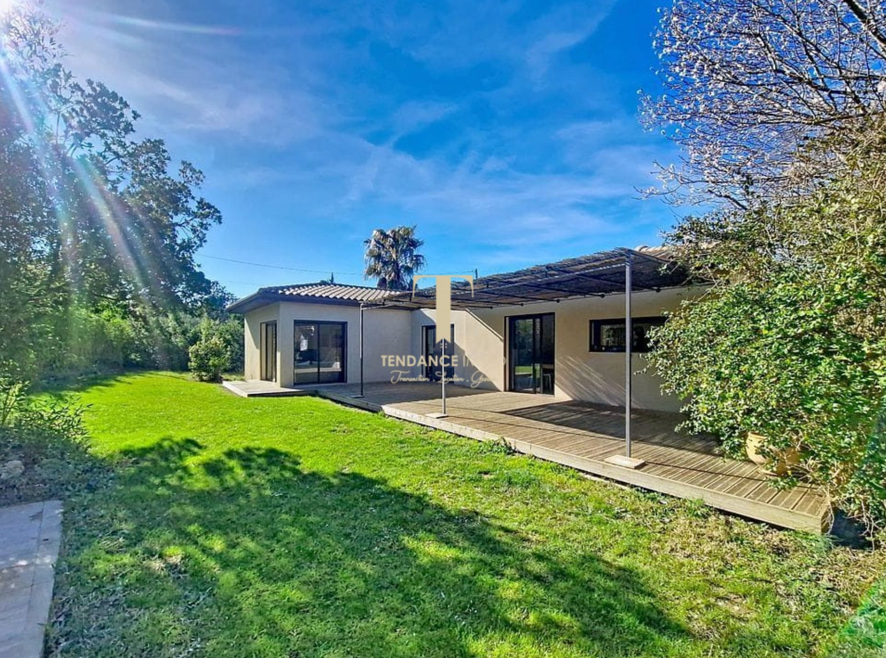 ✓ Grande terrasse avant✓ Petite terrasse latérale✓ Parking devant✓ Cuisine équipée moderne✓ Mezzanine✓ Cellier